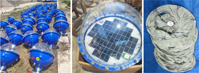 波浪浮标是一种浮标体能随海面波浪运动的锚系遥测浮标。根据浮标体内装载的波浪传感器测量结果可计算波浪高度、周期、方向,测量数据通过浮标体内装载的北斗或铱星通讯装置回传至岸基服务器,方便用户随时观测。浮标体采取可充电电池及太阳能双供电方式,可保证整个观测周期的自主供能。